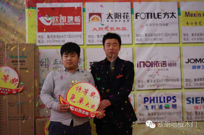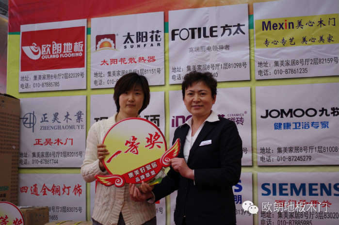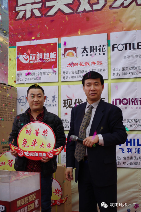 集美家居閆總 抽出本次活動第一個歐朗地板免單大獎 由歐朗地板回龍觀專賣店客戶獲得