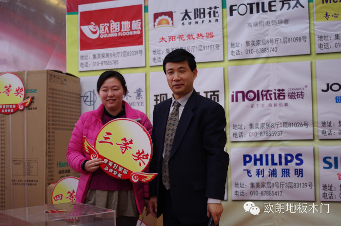 歐朗地板北京總經(jīng)理 劉總抽取歐朗地板第二位免單大獎 由歐朗地板大鐘寺專賣店客戶獲得