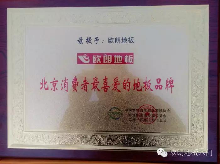 歐朗地板榮獲北京消費者最喜愛地板品牌