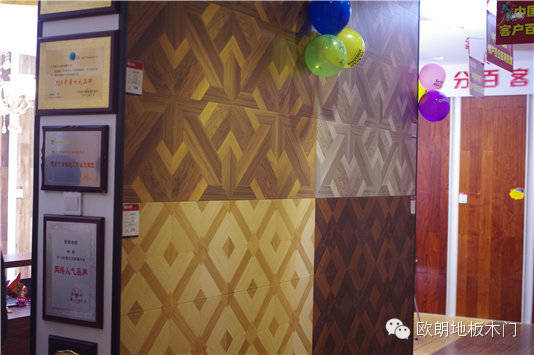 店面歐朗地板樣板展示,每款地板型號(hào)都是大樣板展示,使消費(fèi)者更好的體驗(yàn)地板的鋪裝效果
