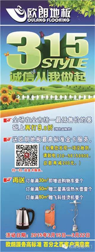 如今的地板市場,在行業(yè)領(lǐng)導(dǎo)和各個建材市場領(lǐng)導(dǎo)的關(guān)懷和重視下,已逐步形成了一個質(zhì)量有保證、服務(wù)講誠信的行業(yè),確保消費者能夠買到實惠可靠的產(chǎn)品。歐朗地板在315期間不僅給客戶提供質(zhì)量信得過產(chǎn)品,同時也提高了服務(wù)標(biāo)準(zhǔn)---歐朗地板服務(wù)高標(biāo)準(zhǔn)百分之百客戶滿意度。