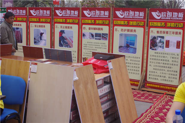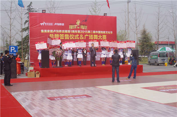 第二屆中國地板文化節(jié)以環(huán)保和健身為主題,開幕式的啟動會上不僅參會的商家給出了優(yōu)質的商品和超低的折扣,同時來自各個社區(qū)的15支廣場舞隊也獻上了優(yōu)美、火熱的舞蹈。歐朗地板團隊更是以總裁簽售的超低折扣和勁爆的舞曲《小蘋果》引爆全場!