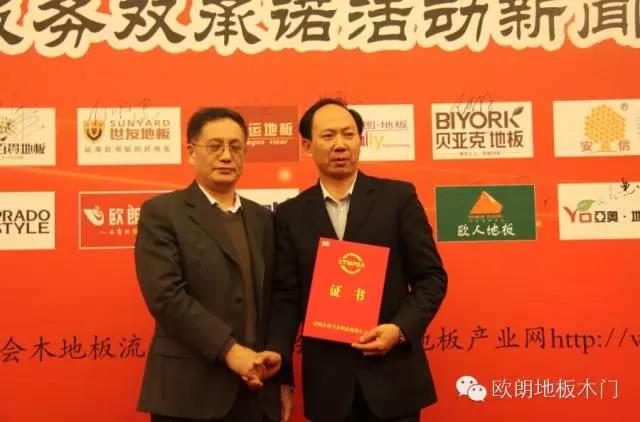 地板文化節(jié)歐朗地板榮獲地板30家雙承諾單位,歐朗地板劉總領(lǐng)獎(jiǎng)