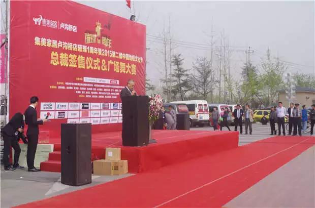 活動開始前,集美集團盧溝橋店進行了聲勢浩大的升旗儀式,集團總裁趙建國先生也發(fā)表了重要講話,并對建材家居市場大環(huán)境做了精確分析,給廣大商戶吃了一顆定心丸。2015我們會更好!