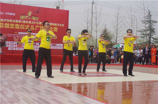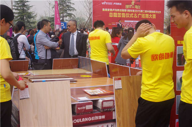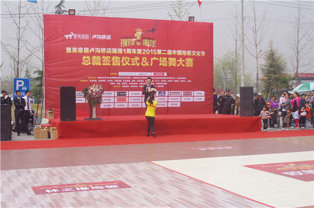 第二屆中國地板文化節(jié)以環(huán)保和健身為主題,開幕式的啟動會上不僅參會的商家給出了優(yōu)質的商品和超低的折扣,同時來自各個社區(qū)的15支廣場舞隊也獻上了優(yōu)美、火熱的舞蹈。歐朗地板團隊更是以總裁簽售的超低折扣和勁爆的舞曲《小蘋果》引爆全場!