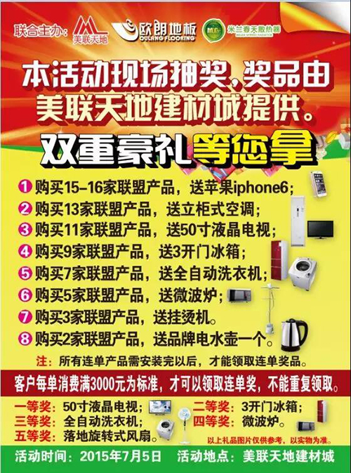 8. 購買15-16家聯(lián)盟產(chǎn)品,送蘋果6手機一臺;