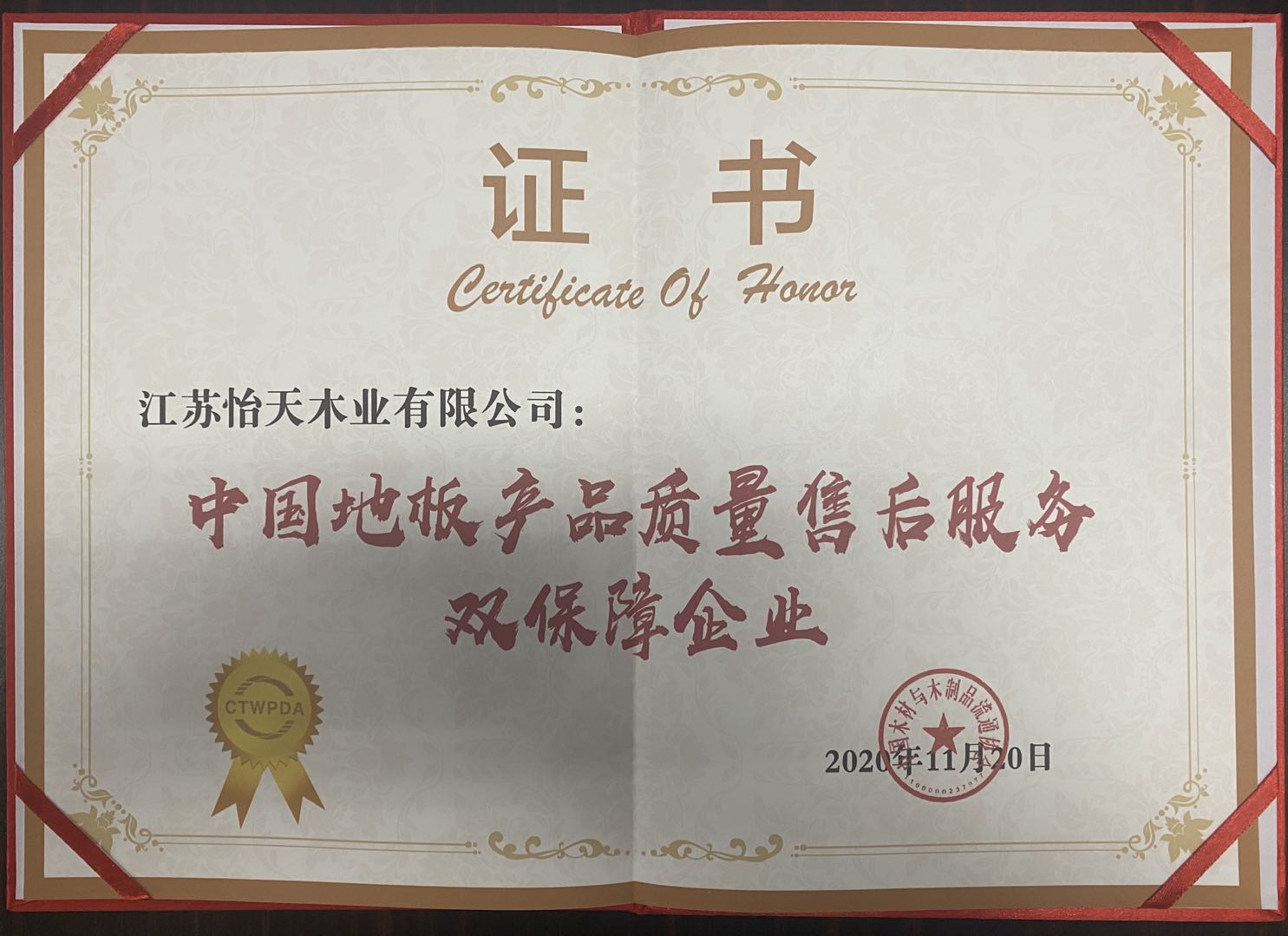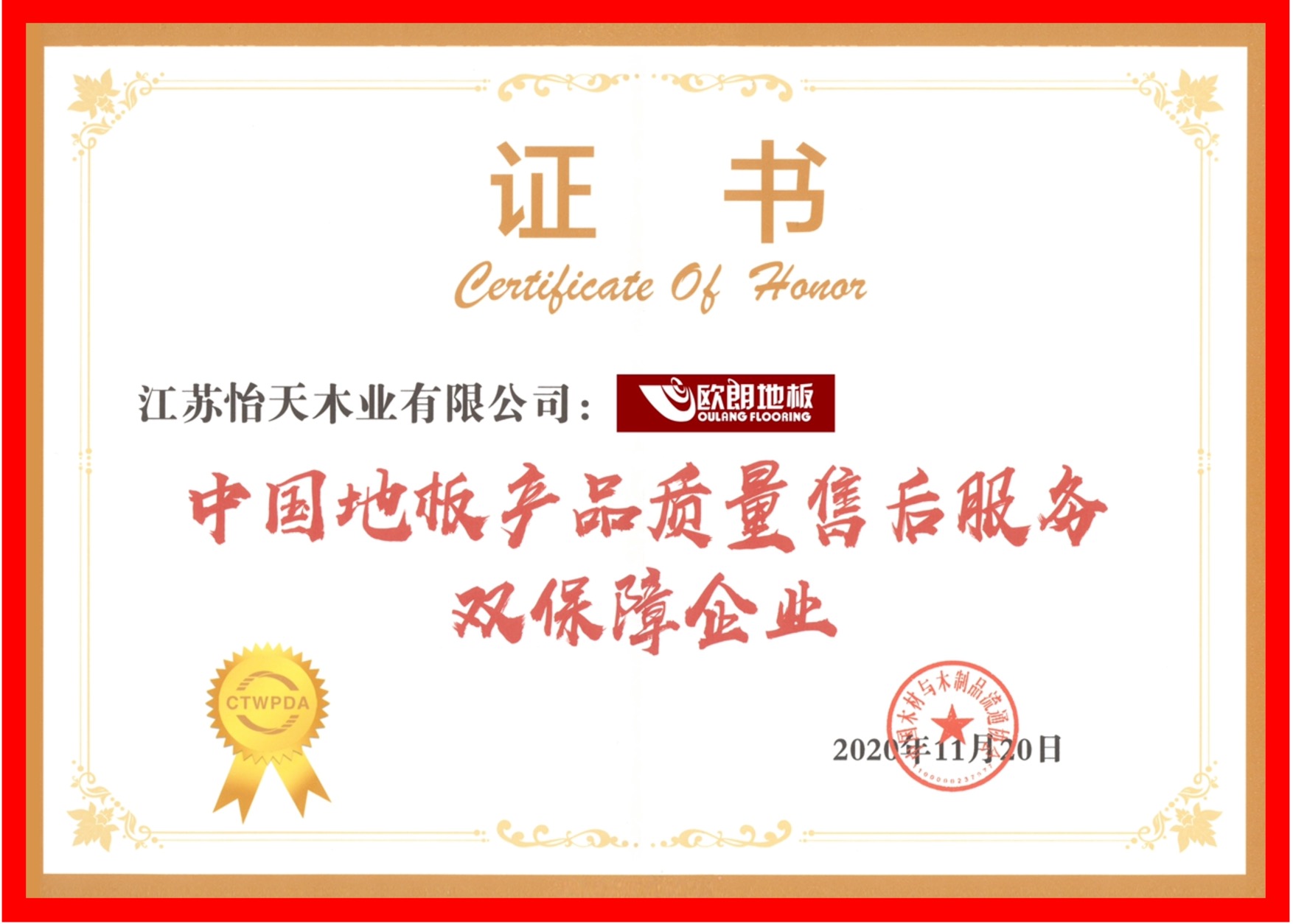 歐朗地板榮獲“中國地板產(chǎn)品質(zhì)量售后服務(wù)雙保障企業(yè)”榮耀驗(yàn)證