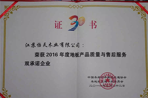 2016年地板產(chǎn)品質(zhì)量與售后服務(wù)雙承諾企業(yè)